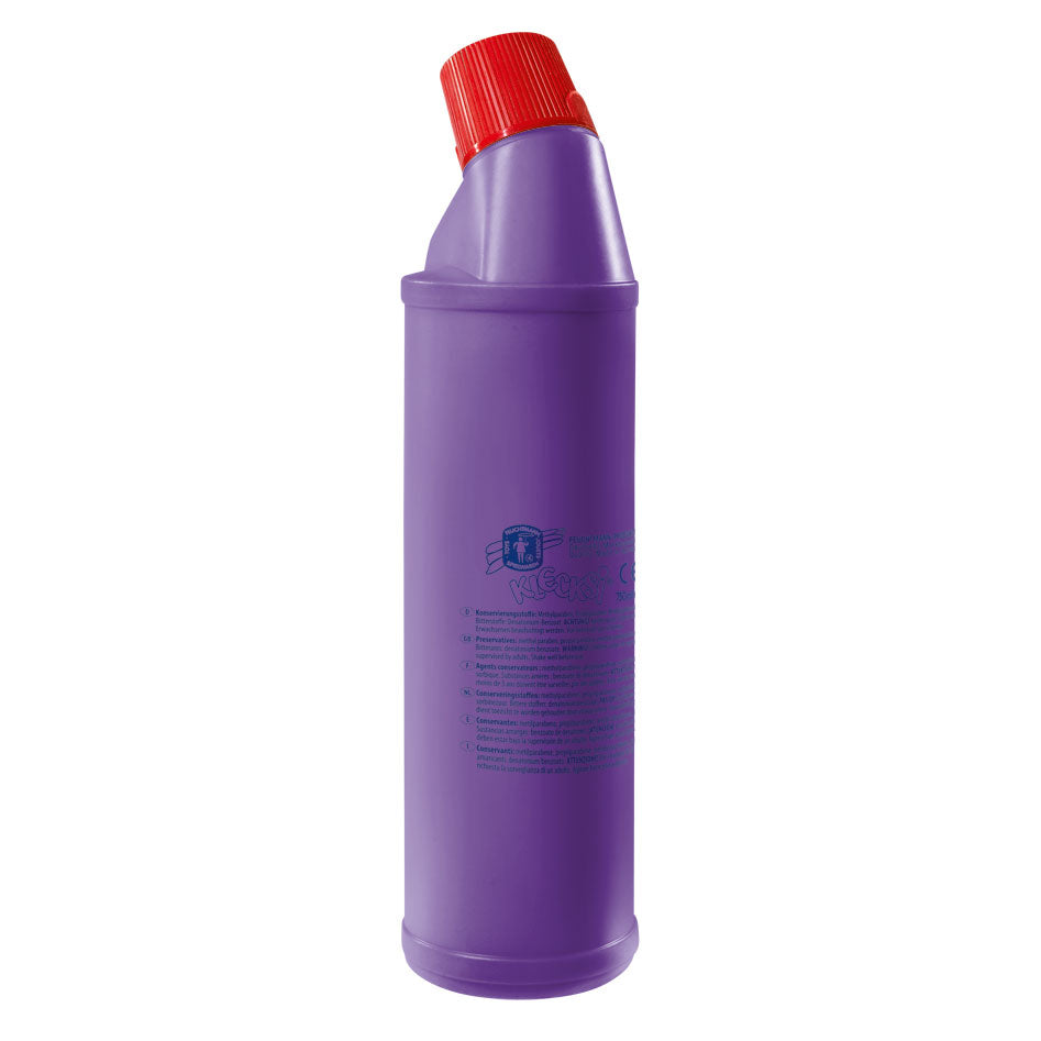 Deze fles Klecksi vingerverf is perfect voor creatieve activiteiten! Met een inhoud van 900 ml paarse verf, biedt het voldoende verf voor grote groepen zoals scholen, clubs en kinderdagverblijven. De speciale structuur van de verf zorgt ervoor dat het aan bijna alle oppervlakten hecht, zonder uit te lopen. Bovendien is het verf gemakkelijk uitwasbaar, waardoor het ideaal is voor kinderen.