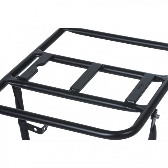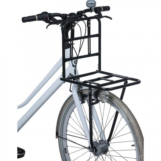 De Basil Voordrager L is een sterke en grote voordrager voor aan het stuur van een dames- of herenfiets. Deze voordrager biedt extra ruimte op je fiets en is perfect voor het plaatsen van een grote fietskrat. Met een maximaal gewicht van 10 kilo is deze voordrager geschikt voor een zware rugzak met schoolboeken of een tas met boodschappen. De voordrager is voorzien van slanke MIK-profielen, waardoor je eenvoudig een krat op de voordrager kunt klikken en weer kunt verwijderen. De voordrager is snel te danken aan de beugels op de vooras, maar kan niet worden gebruikt in combinatie met verende voorhaken. Hij heeft twee verstelbare stuurhaken en een bevestigingsoog voor een vaste fietslamp. Deze voordrager is verkrijgbaar in de kleur matzwart en wordt geleverd met montagemateriaal. Productspecificaties: - Afmetingen: 40 cm x 28 cm x 96 cm (Buitenwerkse maten) - Gewicht: 2 kg - Activiteit: Boodschappen, woon/werk, naar school, recreatief - Kleur: Zwart -: Niet volledig - Systeem: Inclusief geïntegreerde MIK profiel