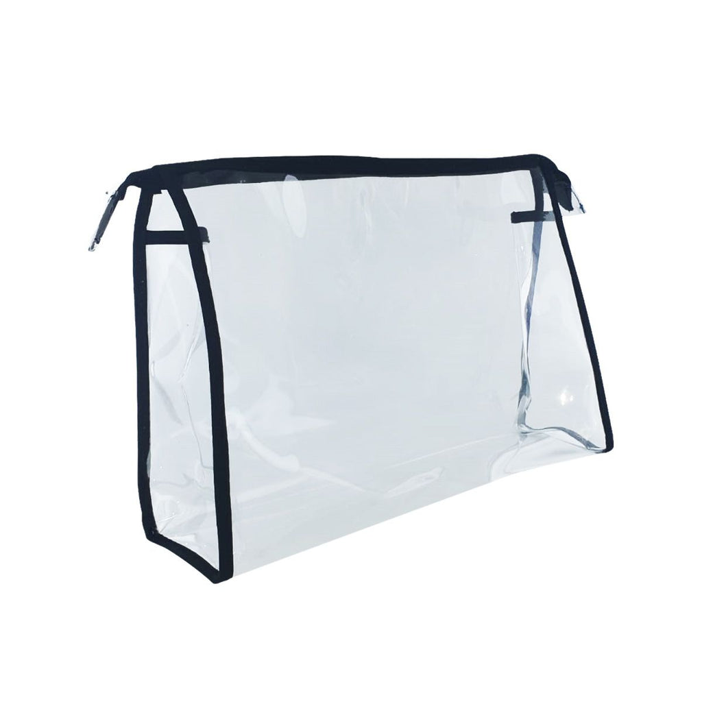 Reisetui Transparant is een doorzichtige etui met rits. De buitenafmetingen zijn 22cm breed en 15,5cm hoog. De doorzichtige toilettas is ideaal voor in de handtas, waarbij vloeibare transparante verpakt moet zijn voor controle. Daarnaast is deze etui thuis of in de salon ook erg handig, omdat je altijd de inhoud kan zien. Specificaties: Grootte Tas: Circa 22 x 15,5 x 7cm Materiaal Tas: Polyester Kleur Tas: Transparant Decoratie: Zwarte rand en rits Plus- en minpunten Transparante etui Met rits Perfect voor in de handbagage Zie altijd je producten