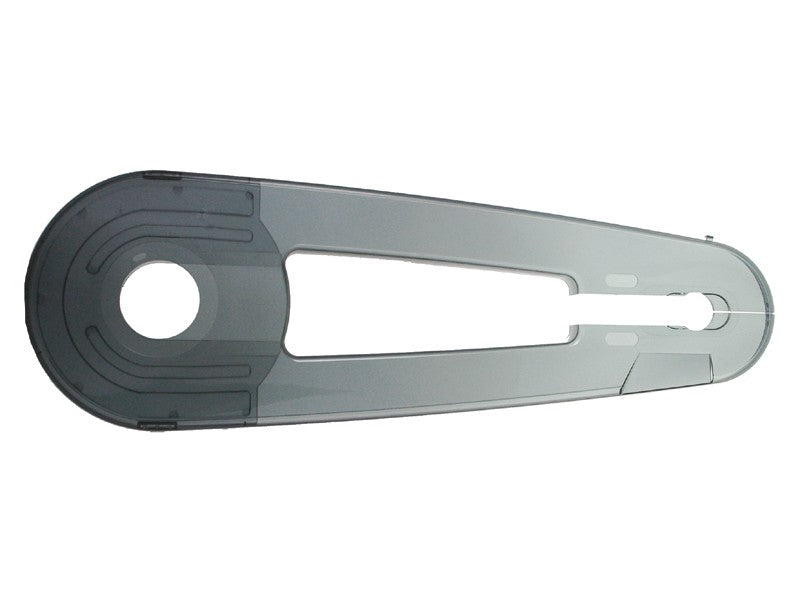 De Axa VS Benjamin kettingkast is geschikt voor 24" fietsen en biedt optimale bescherming voor de ketting. Met een lengte van 60 cm en een hoogte van 19,5 cm is deze kettingkast geschikt voor kinderfietsen. Het transparante kunststof materiaal zorgt ervoor dat de ketting volledig is afgeschermd, waardoor voeten en kleding niet beklemd kunnen raken. Daarnaast verlengt het ook de conventionele van de ketting vermoedelijk vocht en vuil minder kans om de ketting te beschadigen. De kettingkast wordt geleverd inclusief materiaal en is eenvoudig te vinden met een achterwand en Achterbeugel Specificaties: - Geschikt voor wielmaat: 24" - Kleur: Transparant - Materiaal: Kunststof - Lengte: 60 cm - Hoogte: 19,5 cm - Diameter crankgat: 6 cm - Gewicht: 500 gram - Geschikt voor 42 tands tandwielen - RC maat: 422-445 mm - Materiaal: Polycarbonaat (dark smoke) - Montagemateriaal