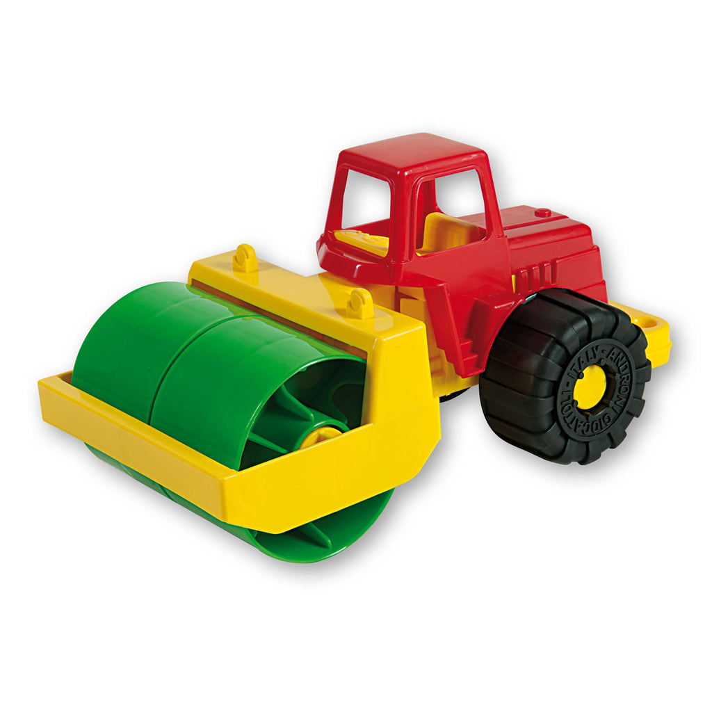 Dit Androni speelgoedvoertuig wordt uitgevoerd in frisse kleuren en heeft een lengte van zo'n 25 cm. Wals iedere bult plat en maak de mooiste wegen met deze wals auto! De speelgoedauto is gemaakt van kunststof en grotendeels geschikt voor zowel binnen als buiten gebruik.