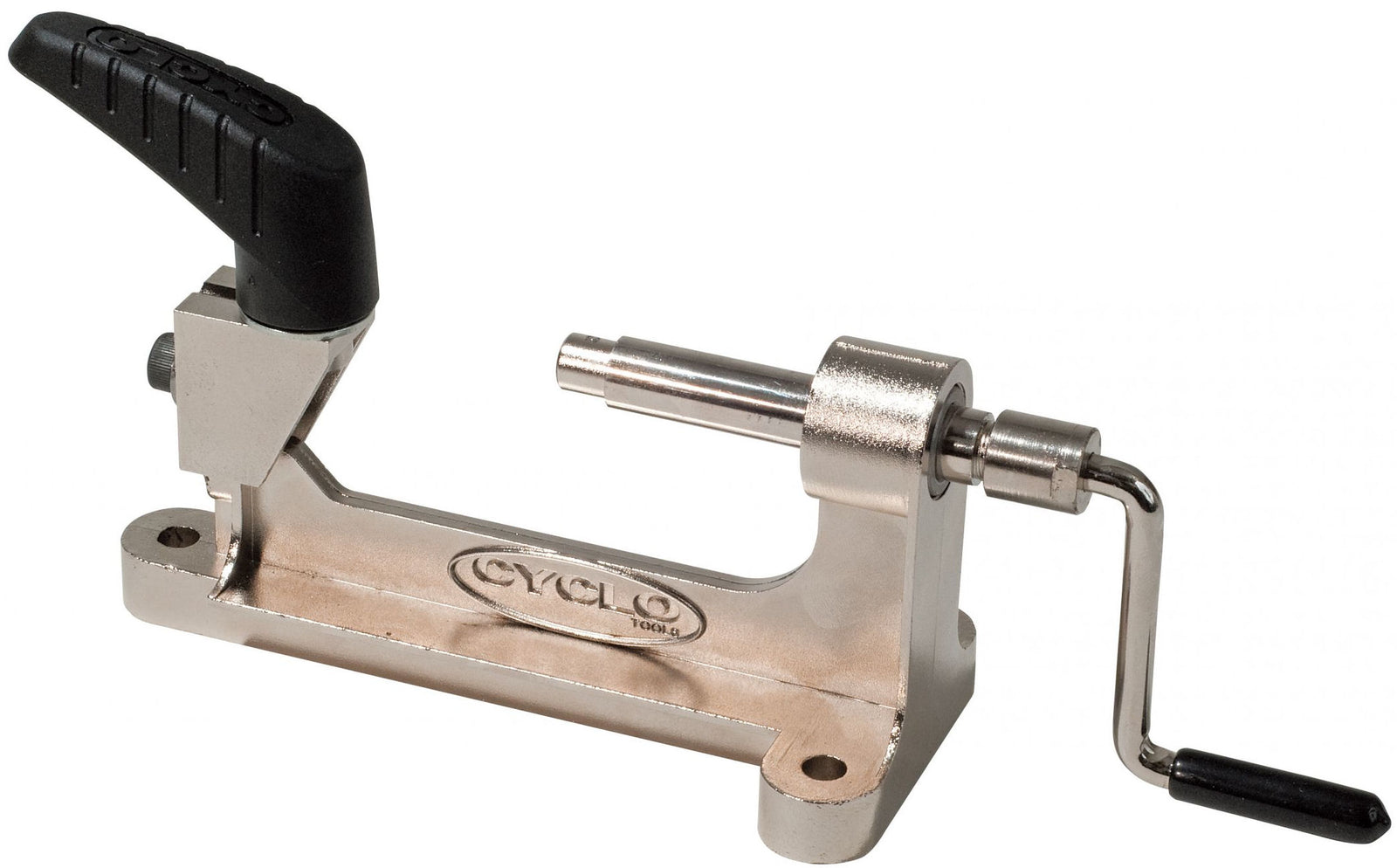 Deze Cyclo Tools Spaak Draadsnijder is perfect voor het aanbrengen van schroefdraad op spaken. In plaats van snijden, wordt de draad geold, waardoor de materiaalstructuur beter behouden blijft en de spaak sterker blijft.