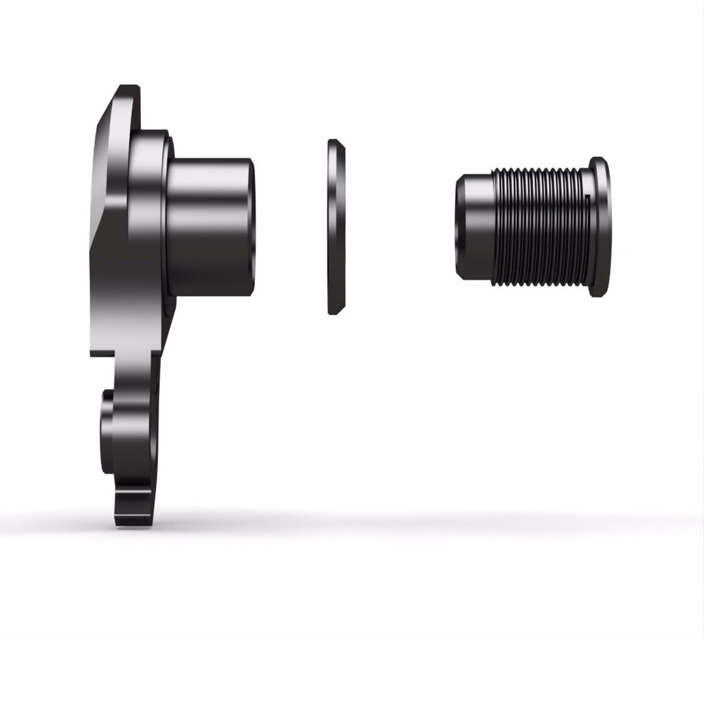 SRAM COMPATIBLE UNIVERSAL DERAILLEUR HANGER. De nieuwe SRAM-compatibele Universal Derailleur Hanger, UDH, vereenvoudigt duizenden derailleurpads tot één universele standaard. Deze nieuwe pad is volledig vervaardigd uit aluminium en is niet alleen sterk, maar is ook ontworpen om naar achteren te draaien en licht te glijden in het geval van een botsing, waardoor het vastlopen van de ketting wordt voorkomen en de aandrijflijn wordt beschermd. • Compatibel met fietsframes die geschikt zijn voor SRAM UDH (Universal Derailleur Hanger) • Compatibel met alle MTB- en EMTB-aandrijvingen • Gemachineerde aluminium behuizing, zwart geanodiseerd. • Thru Axle schroefdraadsteek M12x1.0 • 8 mm Hex • Ook verkrijgbaar in UDH Direct Mount opties Dropout-562 Gravel en Dropout-653 Mountain .
