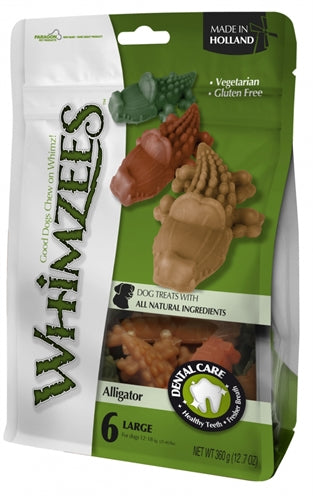 De krokodillen van Whimzees zijn de snackvriendjes van je hond waar hij aanzienlijke achteraan gaat. Deze vegetarische kauwsnacks zijn gemaakt van natuurlijke ingrediënten die helpen bij de spijsvertering en de polijsten van de tanden. Daarnaast zorgen de vezels voor een sterker product. De unieke structuur stimuleert de bloedsomloop in het tandvlees en helpt een slechte adem te voorkomen. Jouw hond heeft langdurig kauwplezier door de speciale samenstelling en de productie. De groeven helpen tandplak en tandsteen te verwijderen tijdens het kauwen.
