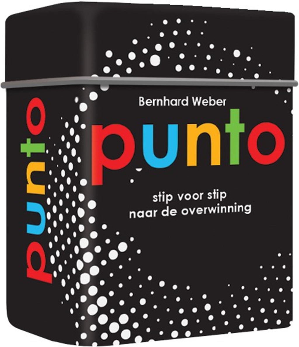 Punto is een leuk kaartspel op reisformaat, dus je kunt het overal mee naartoe nemen. In het spel probeer je jouw lijn te verlengen en die van je tegenstanders te blokkeren. Wie maakt als eerste een lijn met kaarten van dezelfde kleur? Speel omstebeurt een kaart. Probeer jouw lijn te verlengen of die van een tegenstander te blokkeren. Focus je niet teveel op één lijn, want voor je het weet gaat een ander er met de overwinning van door. Inhoud van het spel: • 72 kaarten • spelregels
