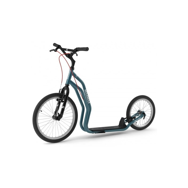 Nieuwe Yedoo Mula met V-brakes, de sterke Yedoo hondenstep Mula is de vernieuwde versie van de Mezeq met V-brakes. De nieuwe collectie is binnen, de sterke Yedoo hondenstep Mula is de vernieuwde versie van de Mezeq met V-brakes. Nieuw frame, betere remmen, fraaie velgen, aluminium stuur, verstelbare hoogte frame tov het achterwiel en een sterkere standaard. Door het nieuwe frame is de stap sportief en sterker geworden. Specificaties: Vanaf leeftijd: 12+ Minimale lengte gebruiker: 150 cm Maximaal belastbaar: 150 kg Gewicht: 9,8 kg Stuurbreedte: 64 cm Stuurhoogte: 95/101 cm (met inbus instelbaar) Totale lengte: 145 cm Frame: Yedoo Hi-Ten staal Vork: Yedoo Hi-Ten staal Wielen: 20” en 16” Snelsluiters: voor en achter Banden: Kenda 20x1,75/16x1,75 Maximale druk: 4,6 bar voor 4,6 bar achter Velgen: HJC dubbelwandig aluminium, CNC gefreesd remoppervlak Remmen: 2x “V” Tektro aluminium Naven: Novatec aluminium Breedte van de naaf: 74 mm Lager: industrieel Stuurpen: Zoom aluminium Balhoofd: Neco aluminium 1 1/8" met mengsel Rem hendels: Tektro aluminium Stuur: Yedoo Cross aluminium Handvatten: Ergonomisch (met anti-rotatie slot) Standaard: Yedoo, centrale montage Voorbereiding voor bidon: 2x Reflectie stickers: Nee Lengte 145 cm Voetenplank 40 cm Stuurhoogte 95 - 101 cm Stuurbreedte 64 cm Rijhoogte 4,5 / 6,5 cm Afstand voetenplank en grond 8 / 10 cm Ruimte voor de berijder 59 cm