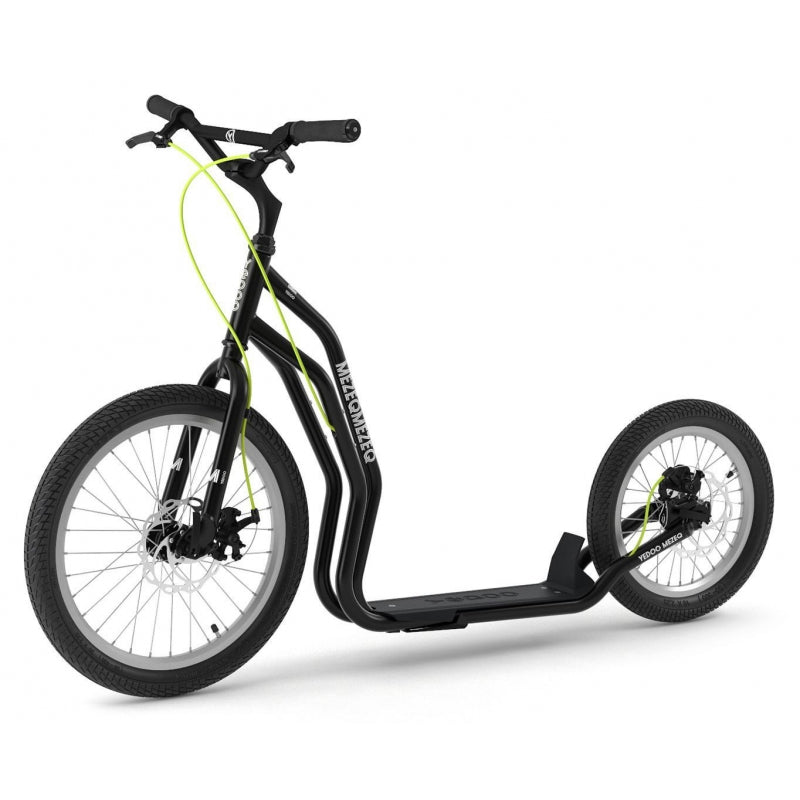 op=op De sterke Yedoo hondenstep Mezeq is vernieuwd op meer dan 30 punten ter vergelijking met zijn voorloper! Onder andere een nieuw frame, betere remmen, betere naven, fraaie velgen, aluminium stuur, verstelbare hoogte frame tov het achterwiel en een sterkere standaard. Door het nieuwe frame is de stap sportief en sterker geworden. Specificaties: Vanaf leeftijd: 12+ Minimale lengte gebruiker: 150 cm Maximaal belastbaar: 150 kg Gewicht: 10,7 kg Stuurbreedte: 64 cm Stuurhoogte: 95/101 cm (met inbus instelbaar) Totale lengte: 148 cm Frame: Hi-Ten staal Vork: Hi-Ten staal Wielen: 20 en 16 inch Snelsluiters: voor en achter Banden: Kenda 20x2,25/16x2,25 Maximale druk: 4,6 bar voor 4,5 bar achter Velgen: HJC dubbelwandig aluminium, CNC gefreesd remoppervlak Remmen: 2x Tektro schijf Aries Naaf en lagers: Novatec aluminium van de naaf: 100 mm Lager: industrieel Stuurpen: Zoom aluminium Balhoofd: Neco aluminium 1 1/8" Remhendels: Tektro aluminium Stuur: Yedoo Cross aluminium Handvatten: Ergonomisch (met anti-rotatie gleuf) Standaard: Yedoo, centraal geïnstalleerd Voorbereiding voor bidon: 2x Reflectiestickers: Nee Lengte 148 cm Voetenplank 40 cm Stuurhoogte 95 - 101 cm Stuurbreedte 64 cm Rijhoogte 6 cm Afstand voetenplank en grond 9,5 cm Ruimte voor de berijder 59 cm