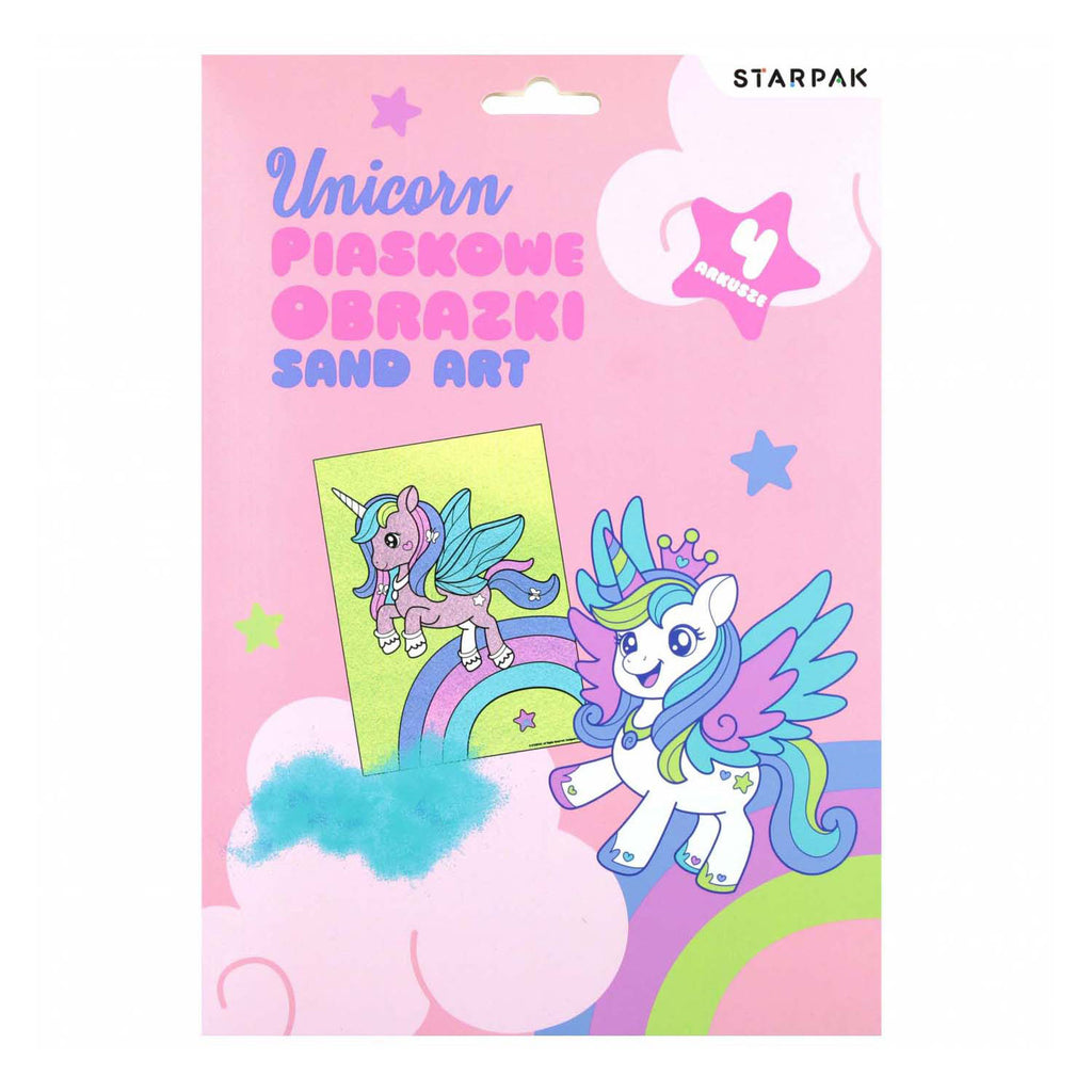 Met deze set kun je prachtige tekeningen maken met je favoriete eenhoorn. Schilderen met zand stimuleert de creativiteit van je kind en leert geduld. Concentratie op een taak die resulteert in handgemaakte, kleurrijke decoraties zal elk kind veel voldoening geven. De set bevat: 4 kleurplaten, 5 tubes gekleurd zand en een kwast.