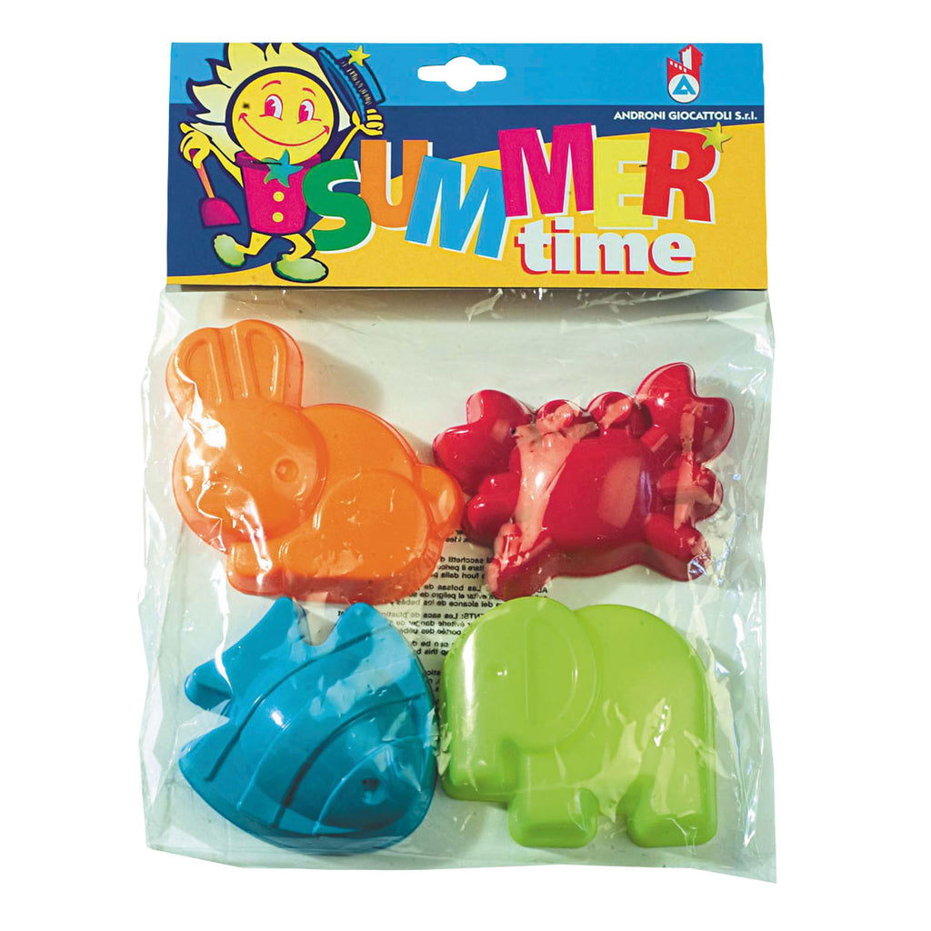 Set bestaande uit 4 dier-zandvormen in verschillende kleuren.