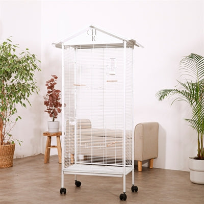 De Zolux Volière Chic Solo Wit 78X48X156 cm is een mooie, hoge vogelkooi met dak en uitschuifbare bodemplaat. Een vogelkooi is de sleutel tot een gelukkig en gezond leven voor je vleugelde vriendjes. Het is hun eigen veilige plekje waar ze kunnen spelen, klimmen en rusten.