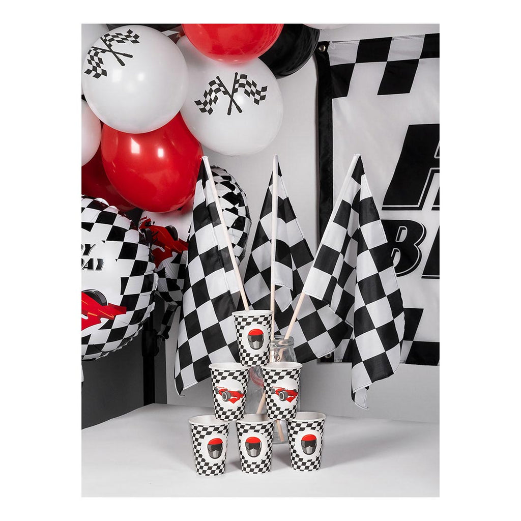 Zwart/wit geblokte racevlag voor de start van de race! Deze vlag heeft een afmeting van 45 x 30 cm en wordt geleverd met een houten stok van 60 cm lang.